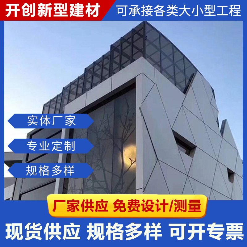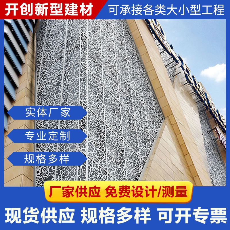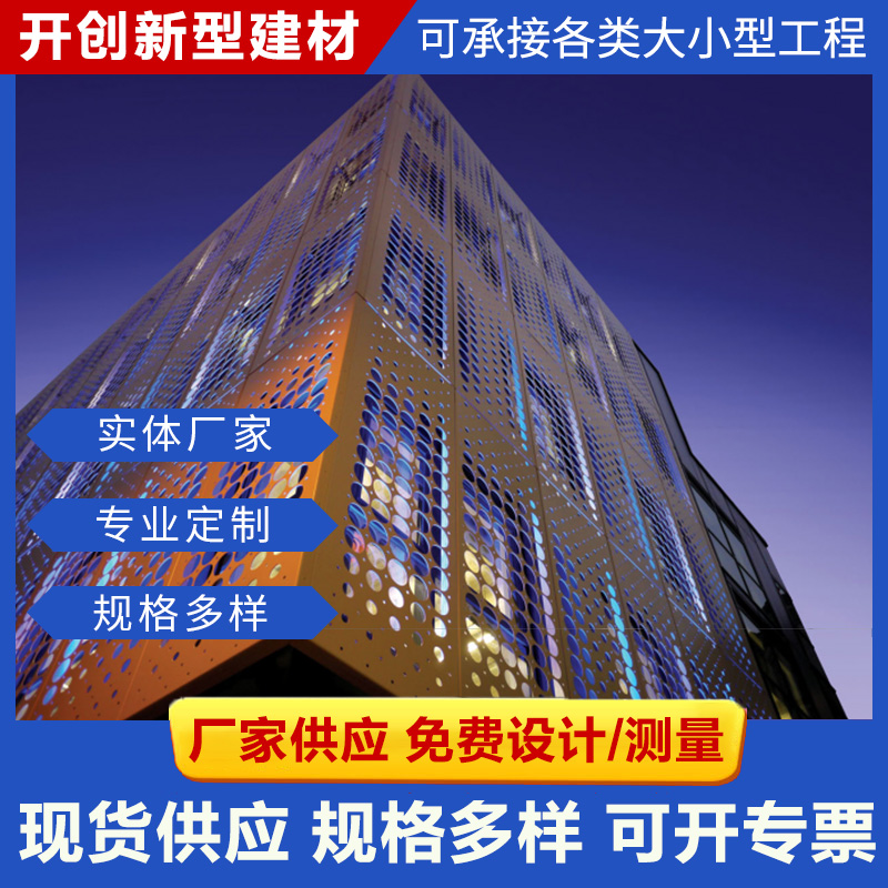 山東開創(chuàng)新型建材有限公司是拉網(wǎng)鋁單板、木紋鋁單板、幕墻鋁單板、鋁方通系列、沖孔鋁單板、雕花鏤空板、長城鋁單板、異形天花定制、圓柱鋁單板等產(chǎn)品專業(yè)生產(chǎn)加工的公司,擁有完整、科學(xué)的質(zhì)量管理體系。本公司的誠信、實(shí)力和產(chǎn)品質(zhì)量獲得業(yè)界的認(rèn)可。 山東開創(chuàng)新型建材有限公司是專業(yè)從事“幕墻鋁單板,鋁方通等建筑裝飾材料”研發(fā),生產(chǎn),銷售,安裝及技術(shù)服務(wù)于一體的現(xiàn)代型企業(yè)。鋁方通是最近幾年出現(xiàn)的新型裝飾材料,它具有輕質(zhì)、耐水、不吸塵、抗腐蝕、易擦洗、易安裝、立體感強(qiáng)、色彩柔和和美觀大方等特點(diǎn),深受用戶的歡迎。高邊鋁方通是采用鋁合金板材為基材,再經(jīng)過數(shù)控折彎等技術(shù)成型,表面噴涂裝飾性涂料的一種新型幕墻材料?!?